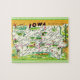 A vintage, colorful postcard map of the state of Iowa repurposed on an 8 X 10 jigsaw puzzle.