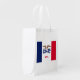 I own a lot of reusable grocery bags, but this one holds its box shape and simply stands up on its own even if there is nothing in it. Its stiffer than your regular reusable bag too, and the material is water resistant. I poured water on the exterior and it didn't penetrate inside to the other side. I'm buying a couple more. Wish I knew how durable these bags were or I would have purchased a few more with my initial order. I also like how it folds and buttons up when not in use, making it easy to put into a handbag or luggage. I haven't used this bag yet, as I purchased it for travel use, like when you're at the airport and need to small sturdy bag to place any airport purchases in, like food, souvenirs etc. I can tell you when you first see this bag, it looks very cheap, but after closer inspection of the material and the seams its a very sturdy reusable bag. I tested it out by putting some really heavy objects inside and I could not observe any stress to the bag at all. Another thing I like about it, is the fact the medium size that this is makes it easy to just carry it in your hand without the bottom of the bag scraping the ground, like most other bags do when you're short. That alone, deserves 5 stars. I just wish there were more colors to choose from! The PDX Airport Carpet printing looks just like the photo, and using this bag during travel might be a conversation piece when/if a native from Oregon happens to see it.