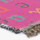 A quality printed throw has its advantages. This is a much finer weave throw than its loopier cousins, and though lighter, it is worth the investment for custom room accessorizing. The back is much prettier than the typical brown, and the fringe on the long sides very vivid, the selvage nicely done. Before photographing, I washed the throw in cold water, delicate, with a thicker woven throw the same size. On tumble dry low, this throw was dry in half the time as the other. This is a very practical quality if you use throws for furniture covers or to wrap up in frequently. The sleekness of the fabric makes it a great layer for accenting or protecting without the feeling of sitting on too much stuff. Perfect for napping or when you feel a light chill coming on. The color printing is beautiful and on this fabric, matched the design and color of my Photoshop image. This is an advantage for blending room fabrics and colors. The fringe on the short sides prints the colors from the design image and therefore varies from the side fringe. I streaked a white fractal line through the plaid pattern to give the illusion of weaving. This printed as crisp as an illusory thread, and put some white in the short side fringe, showing another advantage of print vs loomed- for artistic purposes, line lines, detail, and color integrity can be planned and preserved. My loomed throws have color limitations and more of a needlepoint texture. Print throws reproduce an exact image. The throw felt a little stiff straight out of the package, but this went away in the first delicate wash. Of course I searched the wash water for ink or bleeding and there was none.