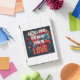 I was super excited when I got my cover in. It is attached by a magnet across the edge. I don’t think it will be very protective but it is very cute. I’m going to keep my iPad in a sleeve and use this face cover while I have it out. It folds to create a tilt for better viewing and to keep the iPad at a slight angle for typing. The colors are bright and it is fun. I’ve really enjoyed it. The personalization looks like amazing. It is the same color as the picture and is the same brightness. Well done! Very nice.
