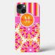 This personalized hot pink, orange, and white Case-Mate Barely There iPad mini Retina display case has a fun tropical starburst floral and striped background pattern with a pink, orange, and white band and circle to add your name, initials, monogram or other text to. This modern and trendy new case makes a chic statement for the hip young fashionista! If you need assistance, email niteowlstudio@gmail.com.