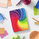 I was super excited when I got my cover in. It is attached by a magnet across the edge. I don’t think it will be very protective but it is very cute. I’m going to keep my iPad in a sleeve and use this face cover while I have it out. It folds to create a tilt for better viewing and to keep the iPad at a slight angle for typing. The colors are bright and it is fun. I’ve really enjoyed it. The personalization looks like amazing. It is the same color as the picture and is the same brightness. Well done! Very nice.