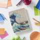 iPad Smart Cover with front and back images of the masterpiece by Japanese artist Hokusai, "The Great Wave Off Kanagawa," where the huge, blue wave is about to strike the brown boats in the midst of a storm.