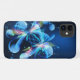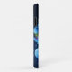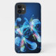 This iPhone 11 case is shown in a blue flower abstract design.
