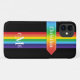 This personalized Case-Mate custom iPhone 11 case has a rainbow-colored vertical stripes pattern down the center with a rainbow colored banner ribbon running horizontally below the camera that has white stitching and white lettering that you can customize with your name or other text. There is also a 3-letter monogram centered at the bottom. The black background can be changed to be any color you want. You'll be proud to show off this modern and trendy new case that makes a chic statement! If you need assistance, email niteowlstudio@gmail.com.