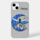iPhone 14 Plus Case in blue and grey with moon and dragonflies. The name "Paisley" can be changed "Wild Soul" is permanent. Thanks to Creative Fabrica for some of the elements in the design.