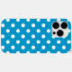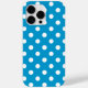 iPhone 14 Pro Max case is shown in a cute blue and white polka dots print.