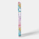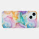 This iPhone 15 case is shown in a pretty colorful ink swirl art print.