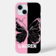 "Protect your phone in style with this unique custom case featuring a beautiful butterfly design on a pink and black background. The case is designed to fit your [phone model] perfectly, providing superior protection against scratches and drops. The vibrant colors and eye-catching design make it a great way to personalize your phone and show off your individuality. Order now and get ready to turn heads!"