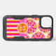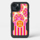 This personalized hot pink, orange, and white Otter Box iPhone 6 or 6s case has a fun tropical starburst floral and striped background pattern with a pink, orange, and white band and circle to add your name, initials, monogram or other text to. This modern and trendy new case makes a chic statement for the hip young fashionista! If you need assistance, email niteowlstudio@gmail.com.