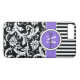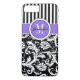 This personalized black and white Case-Mate custom iPhone 7 case has a floral damask and striped background pattern with a lavender purple and white band and circle to add your name, initials, monogram or other text to. This modern and trendy new case makes a chic statement for the hip young fashionista! If you need assistance, email niteowlstudio@gmail.com.
