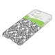 Personalized modern black and white damask pattern Uncommon’s Clearly™ Deflector iPhone 7 Case with lime green PRINTED ribbon and PRINTED jewel brooch. Personalize it to add your name, monogram, or other text.