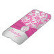 Personalized modern hot pink and light silver gray damask pattern Uncommon’s Clearly™ Deflector iPhone 7 Case with PRINTED ribbon and PRINTED jewel brooch. Personalize it to add your name, monogram, or other text.