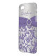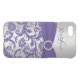 iPhone 7 Case Monogrammed Purple, Silver Damask