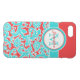 This modern, personalized, turquoise blue, red, and white floral damask pattern Uncommon’s Clearly™ Deflector iPhone 7 Case has spots for you to add your name, initials, monogram, or other text. If you need help customizing this, please email niteowlstudio@gmail.com.
