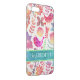 Uncommon’s Clearly™ Deflector iPhone 7 Case has a white background with a whimsical watercolor pattern of illustrated birds, butterflies, hearts, flowers, and leaves in green, pink, turquoise blue, yellow and purple with a turquoise and green band to add your name, initial, monogram or other text to. This modern and trendy personalized new case makes a chic statement for the hip fashionista! If you need assistance, email niteowlstudio@gmail.com.