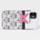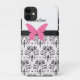 iPhone 5 case with pretty pink butterfly and damask pattern with white accent color you can change. Customize the monogram with any name or initials. Protects your mobile phone in style and has openings for all your ports and buttons. Designed for ladies or girls and anyone who collects butterfly things.