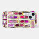 Girly iphone case with makeup design: powder, red, gloss, lipstick, eyeshadow in a stylized palette.