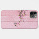 Japanese Pink Sakura iPhone case with blossoms and blue bird