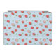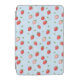 A playful pattern filled with hand-painted strawberries, tiny white flowers, and green leaves on a light blue pastel background. Great for spring-themed products or cute fabric prints.