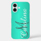 Turquoise faux brushed metal steal personalized with your name and monogram. Mobile iPhone 16 phone case.