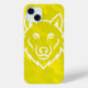 Modern vertical camouflage artwork with a striking white wolf head in minimalist line art. Harmonious color palette and adult aesthetic for bold design lovers.