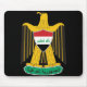 The coat of arms or state emblem of Iraq is a golden black eagle looking toward the viewer's left dexter. The eagle is the Eagle of Saladin associated with 20th-century pan-Arabism, bearing a shield of the Iraqi flag, and holding a scroll below with the Arabic words جمهورية العراق (Jumhuriyat Al-`Iraq or "Republic of Iraq").