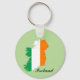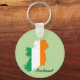 Show everyone your love for the country of Ireland with this unique keychain featuring a map of Ireland filled in with the colors of the Irish flag. The font and color of the text and the background color of the product can be changed to fit your preference.