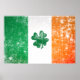 Distressed Ireland Flag Poster with a shamrock inside.