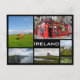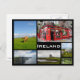 Postcard of multiple photos of the landscapes of Ireland like green pastures with cows, the Cliffs of Moher, a castle and Temple Bar in Dublin with a black frame and the text: 'Ireland'.