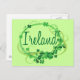 This beautiful St. Patrick's Day design features the caption "Ireland" in dark green text on an oval background of shamrocks in multiple shades of green.