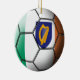 Flag of Ireland embossed across a soccer ball on a two-sided ceramic ornament.