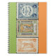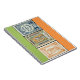This spiral notebook shows a triptych of Irish stamps on a background of green and orange stripes. The stamps were issued in the first part of the twentieth century.