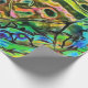 This beautiful wrapping paper is a striking iridescent abalone sea shell pattern. There are shades of blue, green, yellow, pink and orange. It reminds me of butterfly wings. No matter what it reminds you of, it's definitely a very striking design and perfect for all occasions.