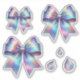 This elegant vinyl sticker set showcases iridescent bows in various sizes with shimmering rainbow colors and luminous teardrop shapes. The stylish, bow-themed sticker will add a touch of flair to anything you adorn with them.