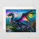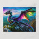 Beautiful and colorful Iridescent Dragon with wings wide spread stands on a mountain