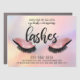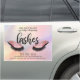 This elegant and chic eyelash extension business advertisement car magnet is perfect for the contemporary lash artist. It features a modern and artsy hand-drawn black illustration drawing of a set of beautiful eyes with faux printed rose gold mascara, and long lashes with faux rose gold and rose pink sparkly glitter eyeshadow on top of a faux peach, pink, purple, and blue iridescent pearl nacre foil background. It also depicts custom black artistic typography, "Lashes." It's trendy, girly, unique, and cool; the perfect design to attract customers.