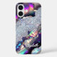 Make your phone stand out with this personalized faux glitter agate case, featuring shimmering silver textures and iridescent rainbow accents. Perfect for anyone who loves bold and glamorous accessories, this case combines style and protection while adding a unique, eye-catching flair. Customize with your name to create a one-of-a-kind accessory that shines with every angle. Available for a variety of phone models.