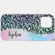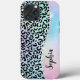 Modern faux ombre iridescent rainbow glitter foil on black leopard spots with background of girly pastel colors of orange, coral, green, aqua, pink, blue, periwinkle and purple with holographic foil wave . This modern safari design will be perfect gift for her. Rainbow iridescent leopard girly glam case.