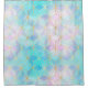 Geometric cube shapes are layered in a pattern and coloured in alternating shades of pastel blue, pink and purple that gives it an iridescent glass look. The shapes are outlined in faux gold glitter.