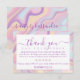 A stunning and modern thank you card to add to your order. Our glamorous abstract pink, yellow, and blue iridescent holographic design create this stunning, modern design. Add your own personal message along with an optional coupon code. Please check out our other matching items for this collection. All artwork is hand-drawn original artwork by Moodthology Papery.