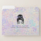 Elevate your office or salon space with this chic iridescent file folder featuring a stylish leopard print updo and holographic design. Perfect for makeup artists, lash technicians, and beauty enthusiasts who want to add a touch of luxury to their organizational tools. Keep your documents stylishly stored and showcase your brand’s elegance and creativity with this unique folder.