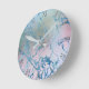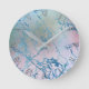 Iridescent Marble | Trendy Faux Holo Blue Pink Round Clock