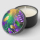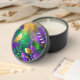 Iridescent mardi gras background with beads mini candle favors