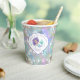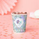 Make waves at your mermaid-themed celebration with this dazzling birthday paper cup! Covered in a watercolor-style mermaid scale pattern in shades of purple, teal, and seafoam green, this sparkling design adds a magical underwater shimmer to any present. The front features a custom label shaped like a clam shell, perfect for personalizing with your child’s name and birthday details. Ideal for birthday gifts, party favors, or matching themed supplies, this pattern brings the ocean fantasy to life — one splash at a time! Search ID1144 to see coordinating products in this design set.