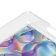 A blue, orange, gold and purple iridescent, metallic geometric design perfect for an acrylic tray.
