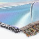 A blue, orange, gold and purple iridescent, metallic geometric design perfect for a blanket.