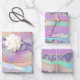 A trio of wrapping paper sheets with a vibrant; glam and elegant design comprising of purple, blue and faux gold glitter strips laid horizontally across each other which gives the illusion of sparkling iridescent marble; granite or agate tops. This design is ideal for any special wedding anniversary; birthday; formal event or party.