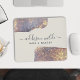 Iridescent Purple Gold Glam Glitter Mouse Pad. This design features a classy signature script style font set against a beautiful modern iridescent sparkle background. Perfect for a beauty salon, hair stylist, makeup artist, or cosmetologist.