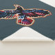 A multi-color folk art rendition of a raven (Corvus corax). The colors of the feathers evoke a sense of iridescence. Customize by adding your own text. You may change both the font and the text color, as well as the background color.